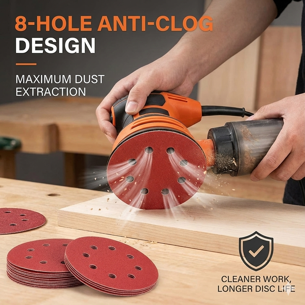 Precision 8-hole pattern for superior extraction. Keeps your workspace clean and the workpiece clear.