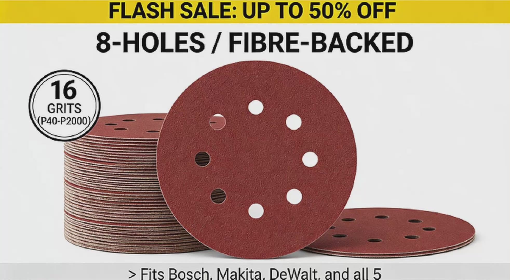 Premium Aluminium Oxide with anti-clog coating. Engineered to last up to 2x longer than standard discs.